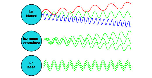 A diferencia de esa luz, el láser emite fotones en una sola dirección y conforma una sola longitud de onda.