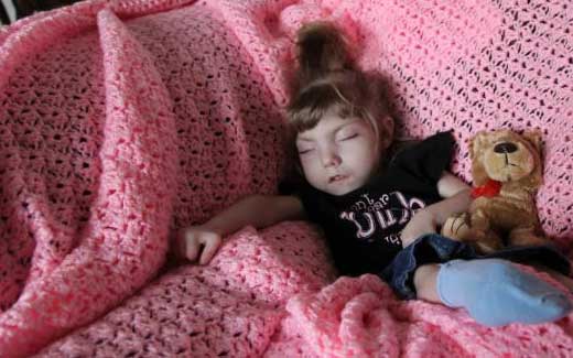 Su edad mental, según las pruebas estandarizadas, era de entre uno y ocho meses. Sus dientes aparentaban una edad de ocho años y sus huesos, de 10. Había perdido toda su grasa de bebé y su cabello y sus uñas crecían con normalidad, pero no había llegado a la pubertad.