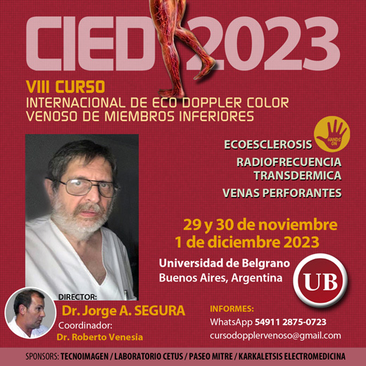 Y llegó una nueva edición del prestigioso CIED, el VIII Curso Internacional de Eco Doppler color venoso de miembros inferiores se llevará a cabo los días miércoles 29 y jueves 30 de noviembre y el viernes 1 de diciembre próximos.