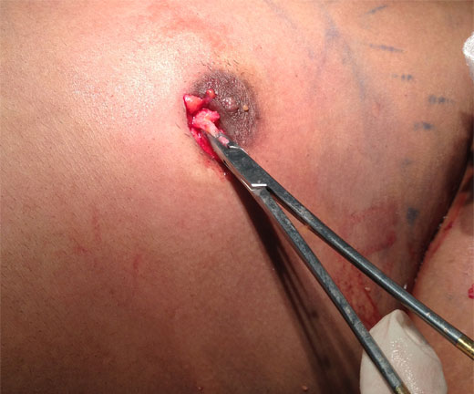 En un tratamiento normal, la incisión se hace en una zona poco visible -en el reborde de la areola-.