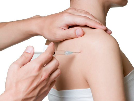 • Inyecciones en la zona de tratamiento: localizadas en escápula y distantes en cuello.